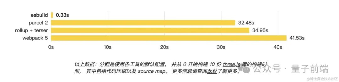 esbuild 是一款基于 Go 语言开发的 javascript 构建打包工具,相比传统的构建工具,主打性能优势。同样规模的项目,使用 Esbuild 可以将打包速度提升 10 - 100 倍,这对广大一直饱受 Webpack 缓慢打包速度折磨的开发人员来说,简直就是福音。