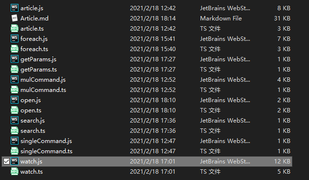 到现在,如果只是执行确定的命令,那么已经完全没问题了,但是有时候需要编译的文件会有很多,像stylus、pug这些可以直接编译整个文件夹的还好, 像ts的话就只能一个文件写一条命令,那也太麻烦了。