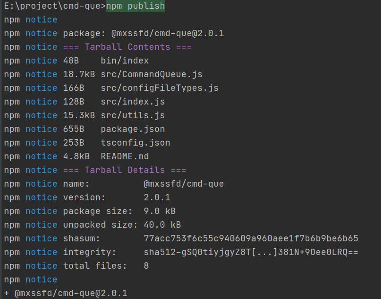 接下来就把它发布到npm上,到时候全局安装后就可以在任意路径上运行了