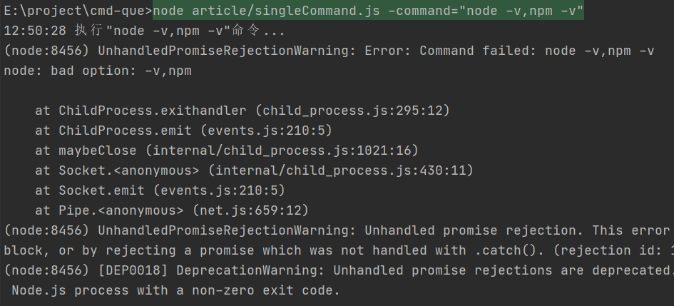 需要知道执行状态,所以把它封装一下,不能try catch,出错就直接reject掉,避免后面的命令继续执行。