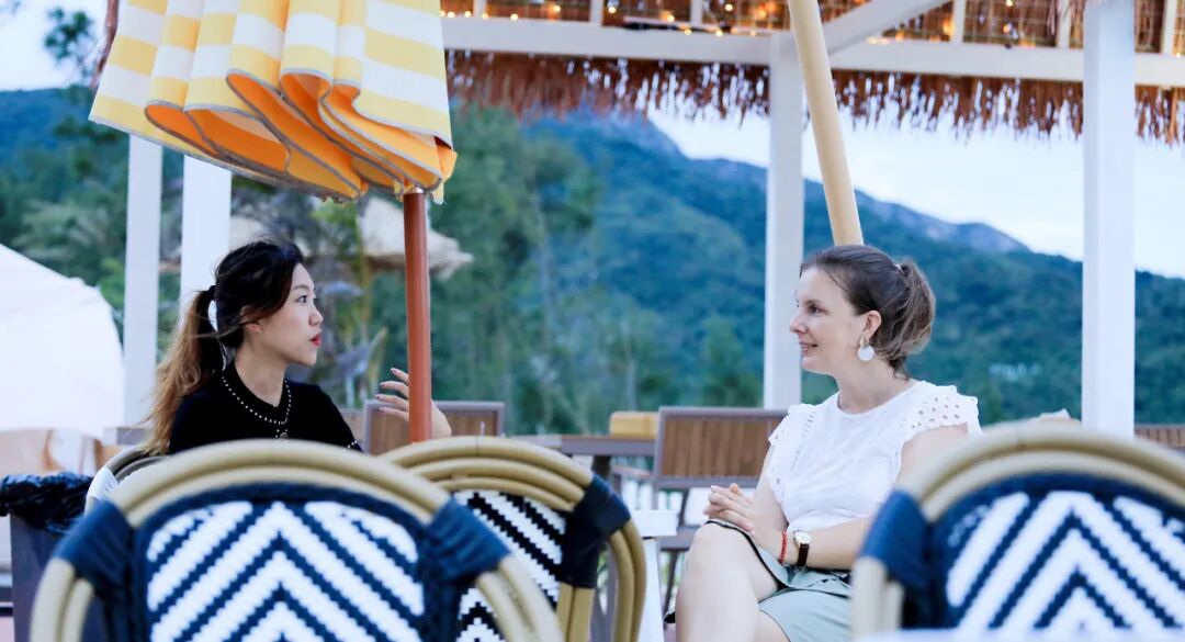 Tracy Yeung from Hong Kong guides Russian Irina Bogodukhova to her camping resort in Dapeng New Area. Video by Lin Songtao