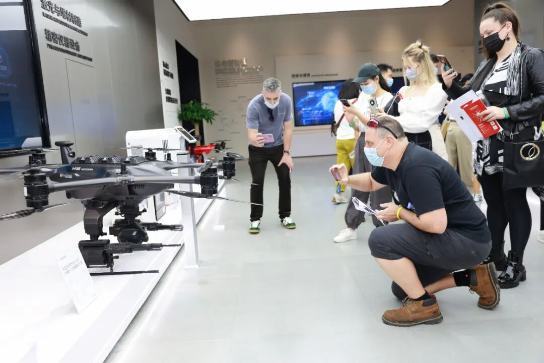 At the Longhua Urban Hall, visitors marveled at the tech-enabled exhibition hall, which used creative ways to tell Longhua’s past and present development stories. While strolling through the hall, visitors used interactive screens to gather information and immerse themselves in the district’s smart city scenarios through a 3-D movie, drones, robots and other high-tech devices made by Longhua companies. They also had fun playing with a so-called metaverse parallel box, which allowed users to create hyper realistic and life-size parallel image of themselves in the box.步入龙华城市客厅,参观者对展厅的科技化水平纷纷表示惊叹。龙华城市客厅是龙华区在践行“数字龙华”战略大背景下,打造的一座坐标未来的城市展览馆,它全面深入的讲述了龙华建区历史、发展之路、规划建设和重点产业布局等内容。穿行在科技感十足的展览厅,外籍参观者们沉浸其中,或使用互动屏幕获取信息,或观看3D电影了解龙华未来的智能城市场景,或近距离观察由辖区公司生产的无人机、机器人等高科技产品。他们还饶有兴致地玩起了元宇宙全息仓,纷纷和全息仓里自己的平行影像合影留念。