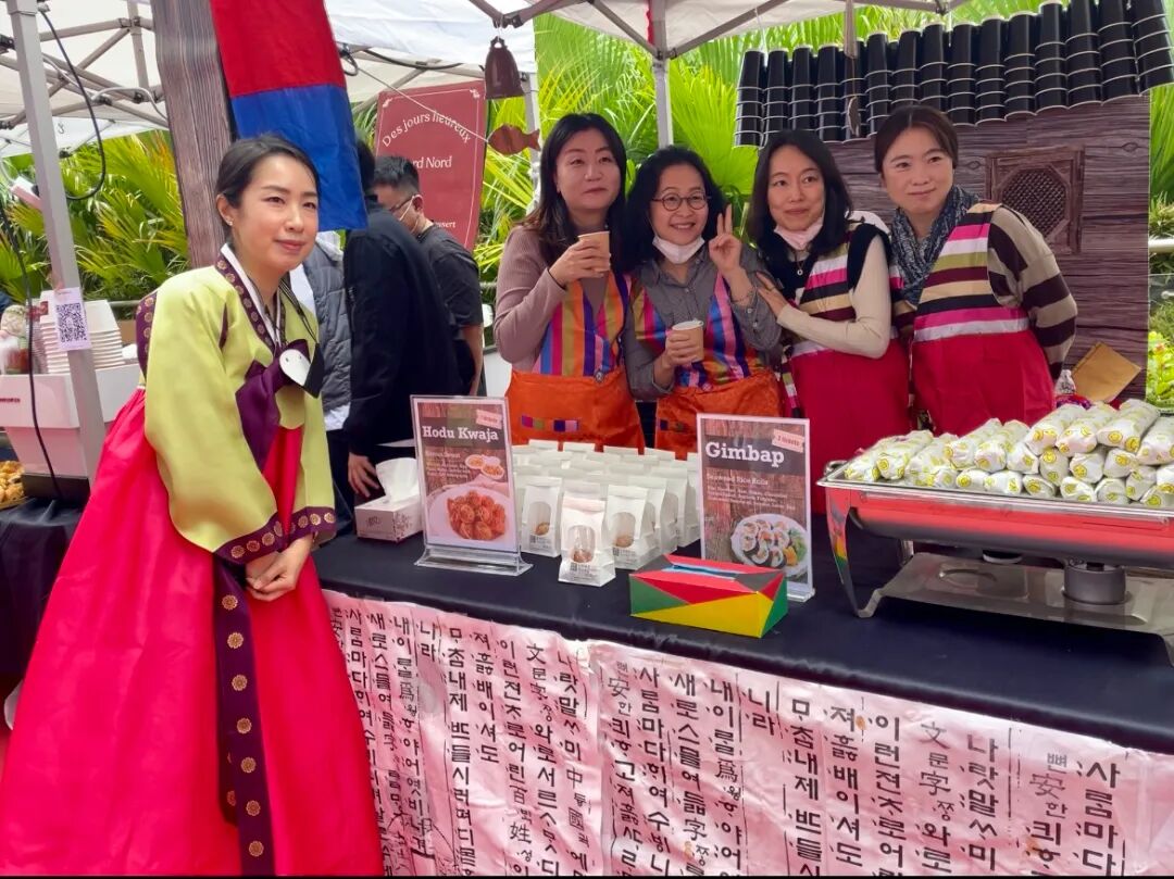 Staffers of a stall selling South Korean street food pose for a photo at Shekou International School last year's International Winter Bazaar.