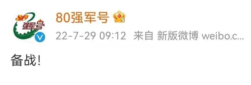 2022年7月29日,中国人民解放军陆军第80集团军官方账号“80强军号”发布微博:“备战!” 短短几个小时内,获得数以万计的网友点赞。