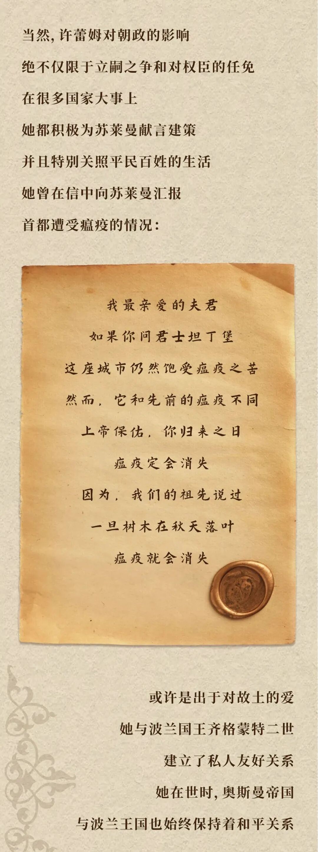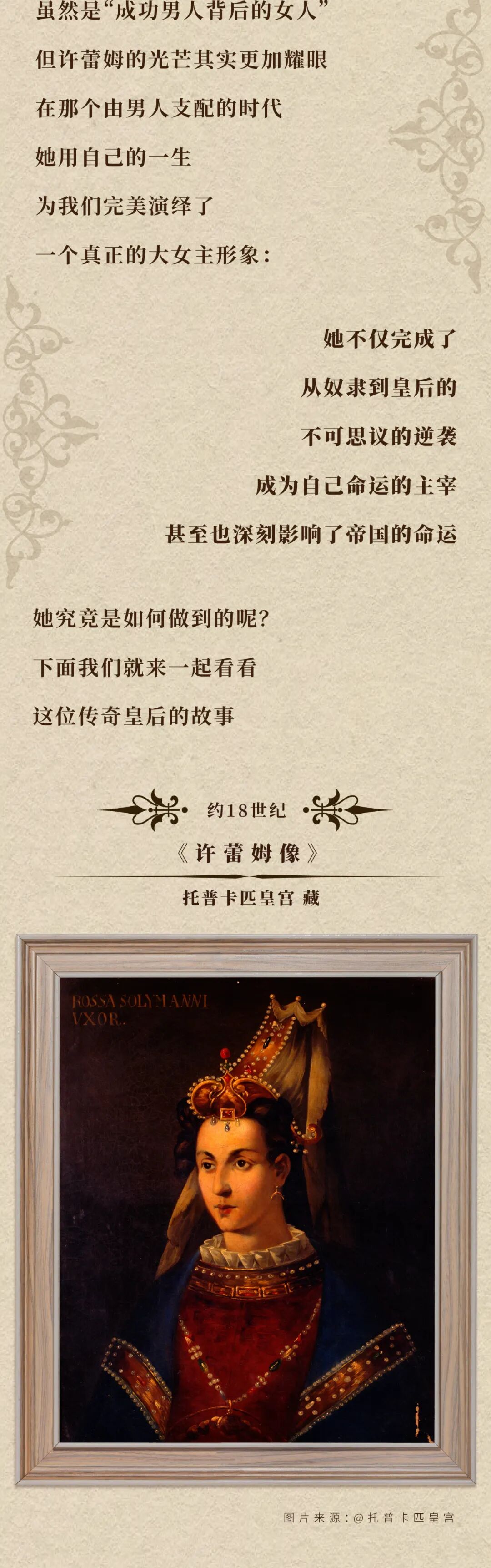 参考资料[1] Leslie Peirce. Empress of the East: How a European Slave Girl Became Queen of the Ottoman Empire. New York Basic Books, 2017..[2] David Chataignier, "Roxelane on the French Tragic Stage (1561-1681)" in Fortune and Fatality: Performing the Tragic in Early Modern France, ed. Desmond Hosford and Charles Wrightington Newcastle upon Tyne: Cambridge Scholars Publishing, 2008.[3] Galina Yermolenko (ed.), Roxolana in European Literature, History and Culture, Farmham, UK: Ashgate, 2010.
