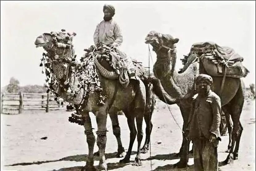 在哈里踏足澳大利亚的第二年,进口骆驼中又存活了两头,后来,越来越多的单峰骆驼告别家乡,来到这块新大陆。资料显示,从1870年到1920年,澳洲从阿拉伯半岛、印度和阿富汗等地进口了2万头骆驼,还从这些地方请了至少2000名驼夫。这些驼夫被笼统地称为“阿富汗人”,主要是因为他们类似的衣着和共同的伊斯兰教信仰。他们被视为“内陆开拓者”,在偏远的定居点之间开辟了供给、运输和通信线路,为澳洲干旱地区带来了经济发展,他们还丰富了文化景观。