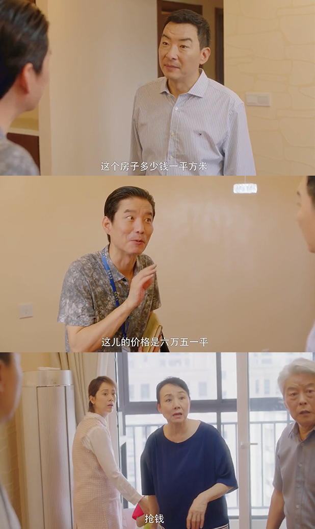 经济上的拮据不仅带来口体之欲的备受压抑,也让亲密关系面临危机。郭海萍的妹妹郭海藻,有个小职员男朋友,两人日子也过得紧巴巴,毕竟攒钱买房结婚是个大工程。在现实与欲望的“合流”下,房子成了扎在两姐妹心中的那根“刺”。看到姐姐为买房不堪其扰,郭海藻受欲望驱使,成为市长秘书宋思明的情妇,不需要奋斗,房子照样唾手可得。但欲望这把双刃剑,既是发展的源动力,也是通往毁灭的高速路。或许是编剧刻意为之,《蜗居》开播的第11年,六六又执笔了电视剧《安家》,开场又安排了一条买房故事线,“海萍”的扮演者海清和“苏淳”的扮演者郝平客串夫妇,一出场就勾起了观众满满的回忆。这一次,海清饰演名牌大学博士、妇产科专家、二胎妈妈宫蓓蓓,跟一家老小继续“蜗居”在上海60平米的房子里。添二孩、找学区房、增加办公书房,宫蓓蓓急迫地需要“换新居”。不过这次海清缺的不再是那“1块钱”,而是合适的房。《安家》第一集海清出场,就给房产中介出了个大难题——要买一套有储物间、交通便利、靠近学区,还要“三面全朝阳”的房。中介报价六万五一平,一家人瞬间大呼:“抢钱呐!”“蜗居”夫妇时隔多年又来看房。来源/电视剧《安家》截图最后,宫蓓蓓在孙俪饰演的房产经理的“感情牌”套路和“心灵鸡汤”的一顿输出之下,贷款买下一套户型不太合理但基本满足以上需求的“跑道房”。操劳半生,只为有个安身之所。电视剧往往承前启后地映照着现实的美好与残酷,通达五感的生活质地让海清饰演的“海萍”和“晓琴”两个角色,在2009年和2022年间跨越时空地如出一辙。《心居》中海清饰演的安徽女人冯晓琴,为了获得上海户口、在上海扎根,嫁给了物质条件尚可但个人能力欠佳的上海男人顾磊。在上海人、车、桥、轨道交通等交织出的城市节拍中,顾家媳妇冯晓琴的一天24小时被捆绑在“大菜场,小菜场、广场”的闭环之中。第一集的出场,她就无奈道出了“沪漂”的心酸,毫不掩饰地揭开现实生活中的焦虑和压力:“在上海,即便是我这样一个天天买菜烧的外地媳妇,都懂得房子是一个人的脸面。上只角(指城市西区的高级住宅区),下只角(指低级住宅区),内环中环外环,商品房,经适房,拆迁房……买什么样的房子,就是什么样的人。至于租房的,那都是无根的浮萍。而对我来说,房子可不止是脸面。更像是刀刀见肉的里子,伤筋动骨。”对于冯晓琴这个人到中年的“新上海人”,四世同堂居住的旧式三居室虽不算太局促,但在她心里,一套真真正正写着自己名字的房子,才是她融入顾家、融入大城市的身份认证。于是,冯晓琴和丈夫首先选择求助于她的大姑姐。从《蜗居》中抠抠搜搜、渴求买下一套房子的郭海萍,到《安家》中希望通过换房改善生活条件的宫蓓蓓,再到《心居》中迫切想要在沪上安家立命的冯晓琴,海清出演的三个角色,有着不同的生活背景,却都与“买房”较上了劲。房子,作为一个符号,在中国的文化底色中与“成家立业”“落叶归根”“家和万事兴”等话题联系在一起,已然代表了“安全”“归宿”等概念。多部影视剧,均围绕房子对于城市人的意义和矛盾展开叙事。例如《北京爱情故事》里从云南考到北京、毕业留在北京工作的“北漂青年”石小猛就曾说:“没钱没房子,在这个城市里边,你永远是外地人。你穿得跟墙壁一个色,你站在街上一言不发、一动不动,永远有人找你查暂住证,稳定这两个字永远不属于你。”于是,他东拼西凑,在五环外买了一套38㎡的公寓。石小猛给女友看他买下来的小房子。来源/电视剧《北京爱情故事》剧照再如近年播出的《小欢喜》《小舍得》《陪你一起长大》等电视剧,中产家庭的父母们为了置换学区房,举全家之力,不惜一切代价,把一家老小闹得鸡飞狗跳。于是有了这样一句话:“一套学区房,两代人的牺牲,三代人的惆怅。”“买房焦虑”不再是字面上的意义,已然牵扯出背后的财产增值、身份认同、下一代教育、家庭和睦等问题。13年过去了,消费时代下都市人实现物欲的精神困境——住房问题,依然在轮番上演,并不断触发着观众共识。海清之所以当选“国民媳妇”,不仅是因为房子,在众多现实主义题材电视剧作品中,她本人实实在在的把“孩子,房子和票子”这三大焦虑表现得淋漓尽致。2000年,在北京电影学院就读的海清出演了第一部电视剧《明星制造》,到2022年的《心居》,海清塑造了一大批可圈可点的小市民角色,陪伴了一代观众成长。影视教学泰斗、培养了张丰毅、王志文、黄磊等明星的齐士龙曾这样描述海清的哭与笑:“她笑起来嘴上有一纹,哭起来傻呵呵那劲,特别叫人同情。”可以说,海清正是通过哭与笑,把观众带入了一部部生活中。中国家庭伦理戏在荧屏“当道”的那些年,正好被刚从北京电影学院表演系毕业不久的海清赶上了。2006年,家庭情感剧《双面胶》热播,斤斤计较的泼辣媳妇胡丽鹃与婆婆的拉锯揭开了国产剧中“城乡结合”的家庭组合模式——2009年《王贵与安娜》的夫妻相处之道,讲述了两个生活背景有差异的人如何在漫长岁月里包容对方——![]()