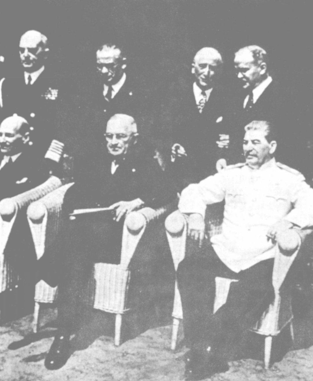 1945年7月17日至8月2日,苏、美、英三巨头斯大林、杜鲁门和艾德礼在波茨坦举行最后一次会晤。来源/彭训厚《第二次世界大战纪实图集》