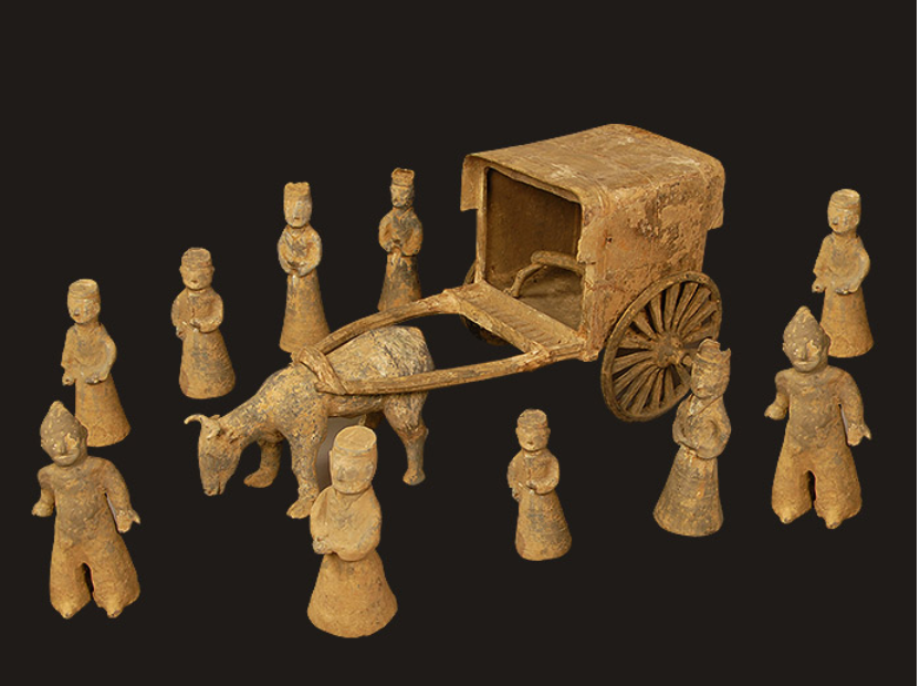 东晋陶牛车及俑群,南京市鼓楼区象山东晋王氏家族墓葬出土,再现了当时豪门贵族出行时前呼后拥的豪华场景。来源/南京六朝博物院