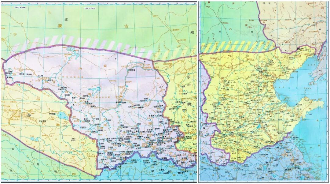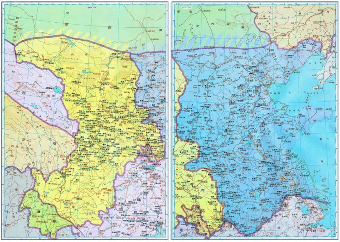 西魏(左)与东魏(右)的疆域图。来源/谭其骧《中国历史地图集》