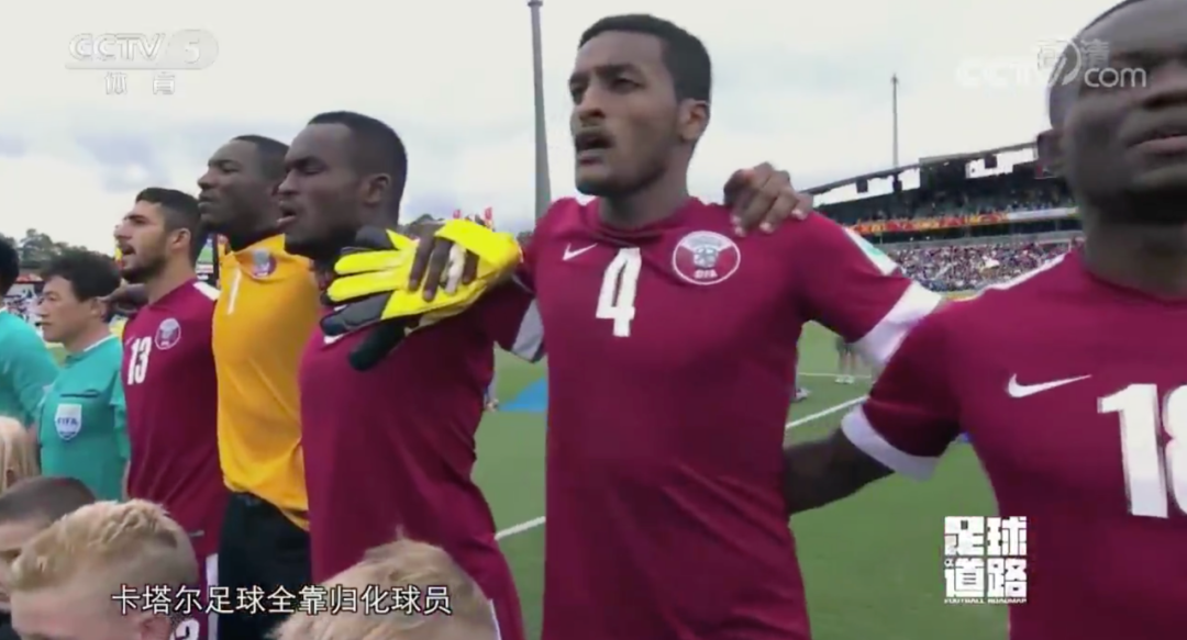 卡塔尔足球曾受到一些质疑,譬如被认为“全靠归化球员”。来源/节目《足球道路》截图