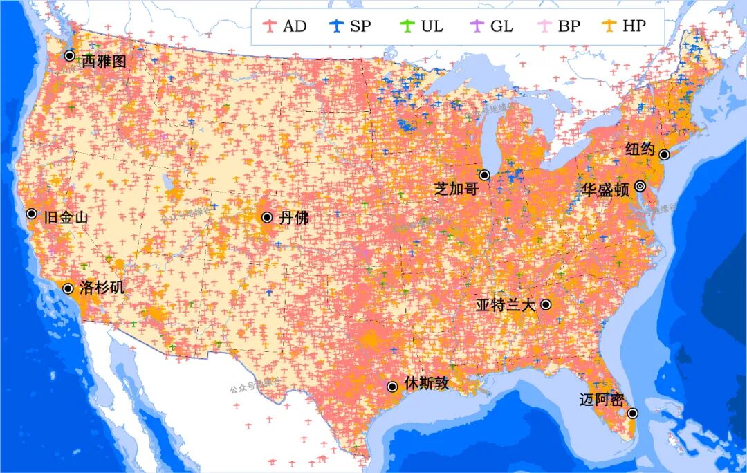 美国本土机场分布