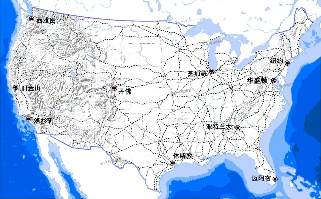 美国本土铁路线路分布