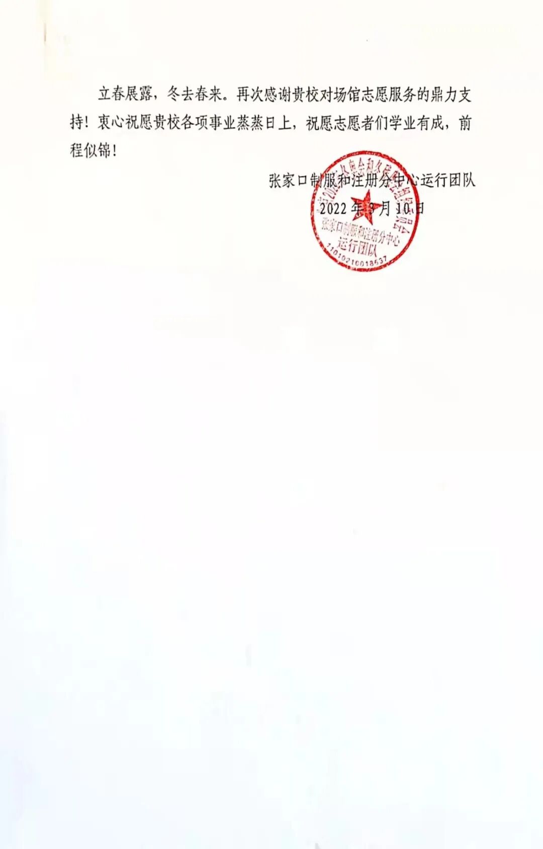 场馆的感谢信