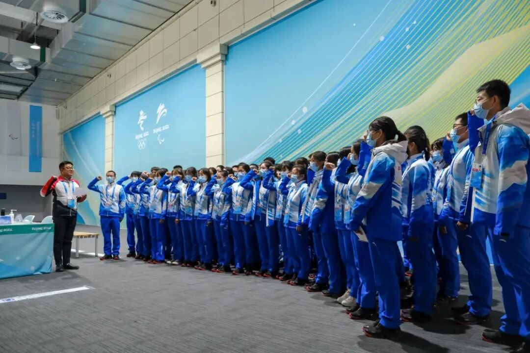 学校在冬奥志愿者中建立临时党支部、临时团支部,作为挺在一线的战斗堡垒,以最严密的组织攻坚克难,党旗所指就是团旗所向,党员、团员做到亮出身份,做好先锋表率。充分利用冬奥会志愿服务契机,将思想引领和思政教育作为学生临时党团组织的使命和责任,定期分层次开展理论学习,以冬奥精神为引领,努力拓展宣传教育内容,赋予冬奥主题教育新的时代内涵,开展“学习习近平总书记给中国冰雪健儿的回信精神”“党旗引领方向,青春聚力冬奥”“巧手绣党旗,点亮中国红”“一起向未来”等主题党团日活动,把政治性、思想性、趣味性结合起来,引导志愿者深化理解,提高认识。以党支部为桥梁,建立党员带团员的联系机制,1名党员联系2名团员,做到志愿者全员覆盖,在业务领域中党员带动团员,在日常生活中党员关心团员,为场馆志愿服务提质增效。以团支部为纽带,联系学校新疆研究生支教团开展“冬奥有我 点燃达坂城冰雪激情”“信愿达城”等活动。冬奥志愿者与达坂城中学的学生进行希望连线,将冬奥热情传播到达坂城。党团组织既是聚力中枢也是坚强后盾,从志愿者最关心的问题抓起,明确具体任务和推进措施,坚持实事求是,深入剖析问题的根源,建立多渠道问题反馈机制,为志愿者提供全方位的服务保障。