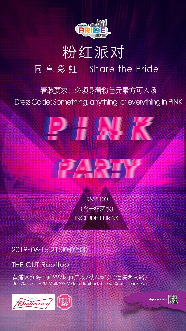 The hottest shade of pink, the breathtaking night sky, and dazzling performance--this could only happen at ShanghaiPRIDE’s Pink Party! Join us at the patio of The Cut Rooftop for a night of wildness and fun on 15-June!