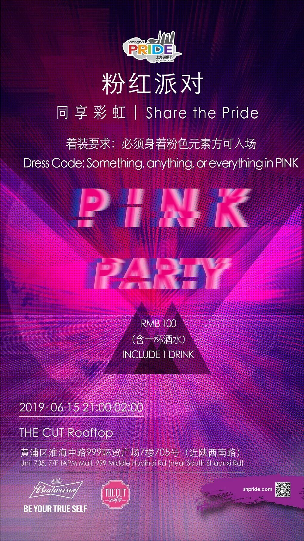 The hottest shade of pink, the breathtaking night sky, and dazzling atmosphere--this could only happen at ShanghaiPRIDE’s Pink Party! Join us at the patio of THE CUT Rooftop for a night of wildness and fun on 15-June!