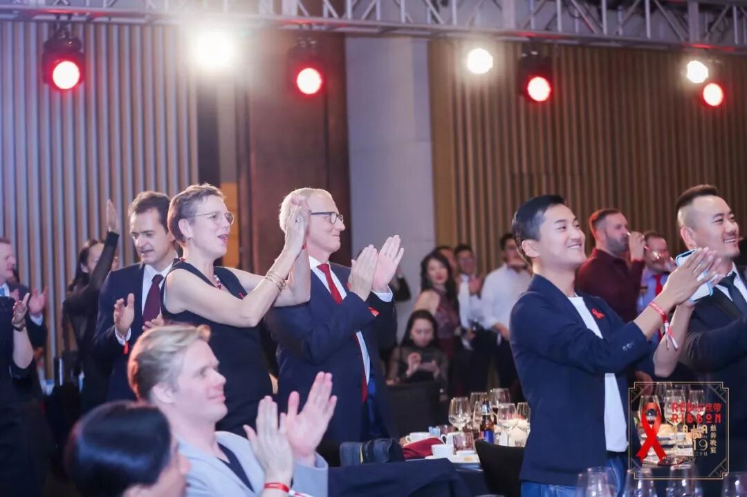 上海青艾的代表Ben还就如何在中心找到自己的社群发表了感人的讲话。2013年,他在发现感染肺部疾病且又被诊断出患有艾滋病后,青艾给了他极大的帮助,此后他便毅然决然的加入青艾,担任艾滋病感染者支持小组的负责人,提供生理、心理咨询和精神支持。红丝带慈善晚宴联合创始人Henk Meyknecht在做分享时说,他对慈善晚会的持续壮大感到自豪,并向他的好朋友Franck Crouvezier——于2005年举办了上海首届艾滋病防治慈善晚宴,致敬和悼念。拜耳中国原博雍先生谈到了公司在构建平等多元的工作文化的承诺。