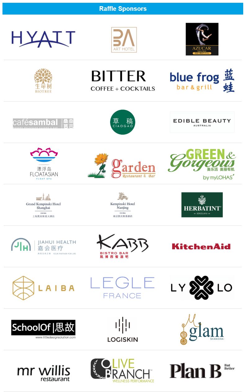 This year’s partners included Brander Urstoff, Earth Water, Il Vino, Instaphoto, Nielsen, Pure Experiential Communications Agency, Les Roches, Tanghui, Tequila Rose and Tito’s Vodka. Table buyers this year included 壹家公益人, Acrylic Mode, Andaz & Friends, Design Union & Guests, Happy Unicorns, Henk & Friends, Jiahui Health Care, Joaquin & Friends, Life Aligned & Jiaha Institute, Lucca390, Mr. Willis, Sigrid & Friends, Simon & Friends, and The Walt Disney Company China. More than 40 hotel, food & beverage, beauty & fitness, and lifestyle businesses donated over 120 raffle prizes this year.