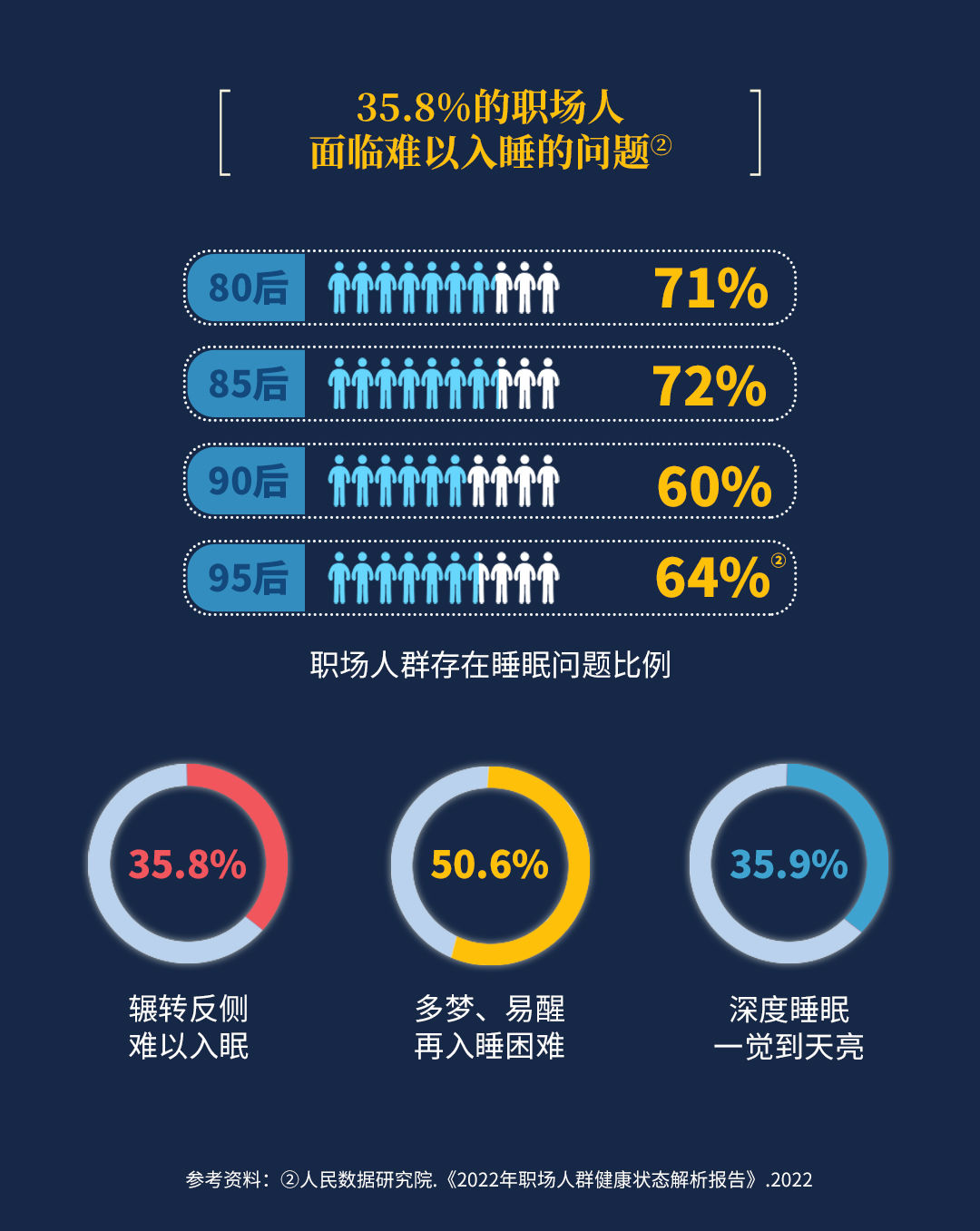 ②人民数据研究院.《2022年职场人群健康状态解析报告》.2022