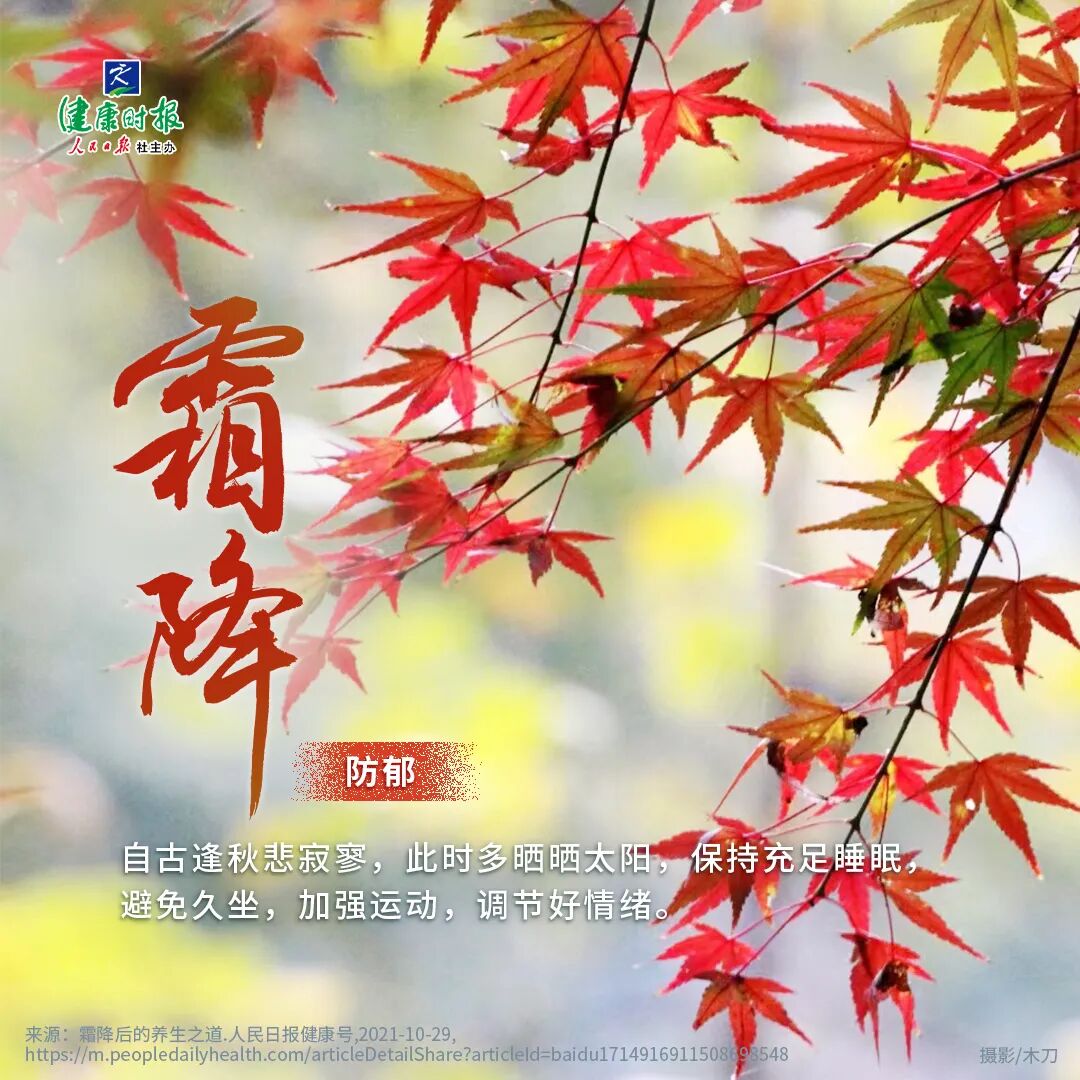 霜降是秋季最后一个节气,意味秋去冬来。俗语说,“霜降一过百草枯。”一过霜降,天气更凉了,也更燥了。