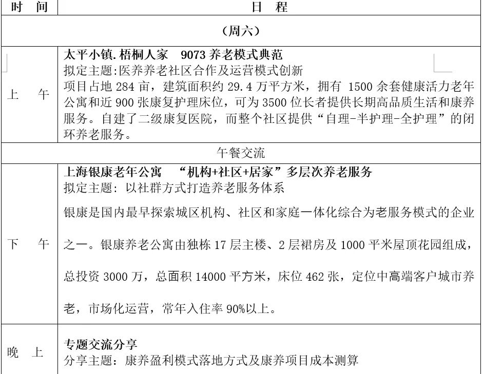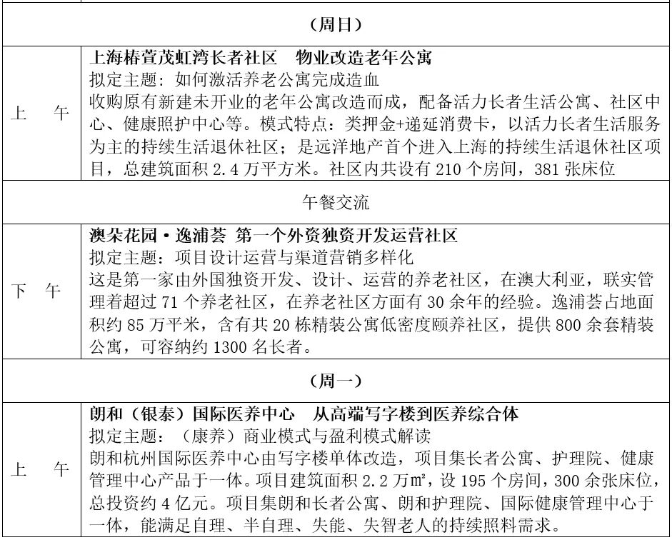 希望通过此次实地考察学习,对“存房养老”、高端出售型养老退休社区经营模式、医养结合如何落地、一体化照护运营管理 、医养结合养老社区等都有更深层次的了解!