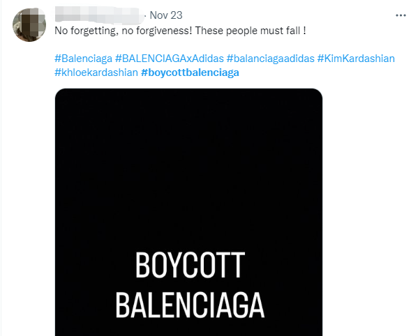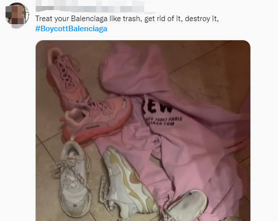 这些广告元素的存在令许多国外网民感到不适,随后社交平台掀起了一场讨伐并抵制巴黎世家的活动。