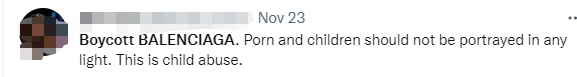但巴黎世家话锋一转,称他们正在对参加广告布景和制作的各方采取法律行动,并称这些物品“未经公司允许”出现在了2023春夏系列广告中,“我们强烈谴责任何形式虐待儿童的行为,我们致力于支持儿童安全和福祉”。