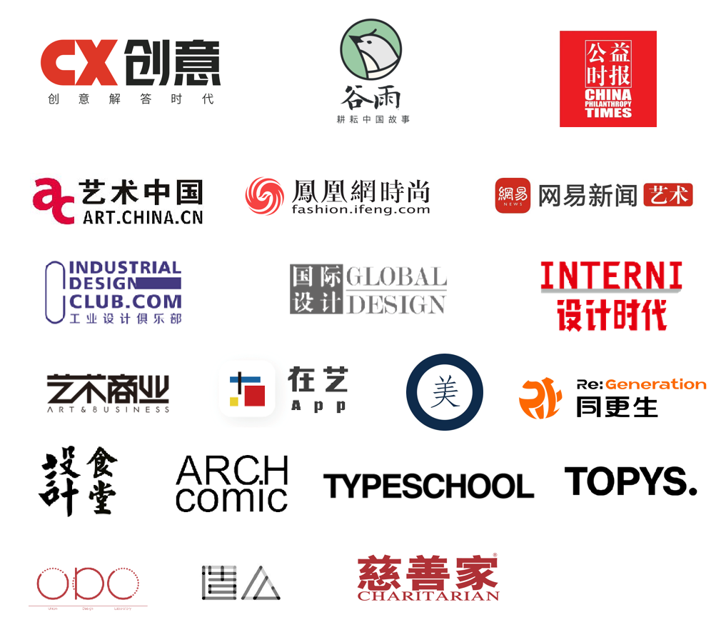 CX创意、腾讯谷雨、公益时报、艺术中国、凤凰网时尚、网易艺术、工业设计俱乐部、国际设计师、INTERNI设计时代、艺术商业、在艺app、一夜美学、同更生、AssBook设计食堂、Archcomic、Typeschool、TOPYS、UniDesignLab、Zaome造么、《慈善家》网站