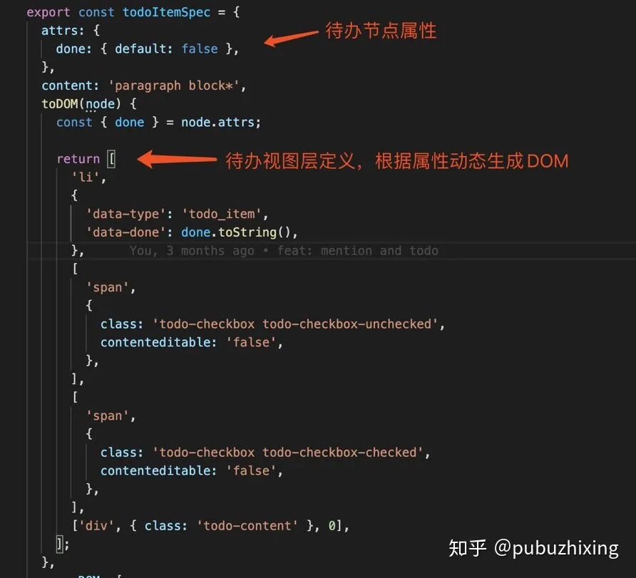 下图是代办项功能插件的例子,使用Spec描述了节点具有的属性,以及如何根据属性渲染这个节点的内容: