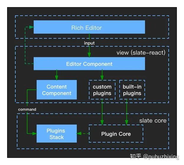 可以看出Slate是可以称为编辑器框架的,它不提供开箱即用的功能,只提供开发编辑器的基础架构,如果想实现一款编辑器需要基于这套架构实现一系列的编辑功能的插件。