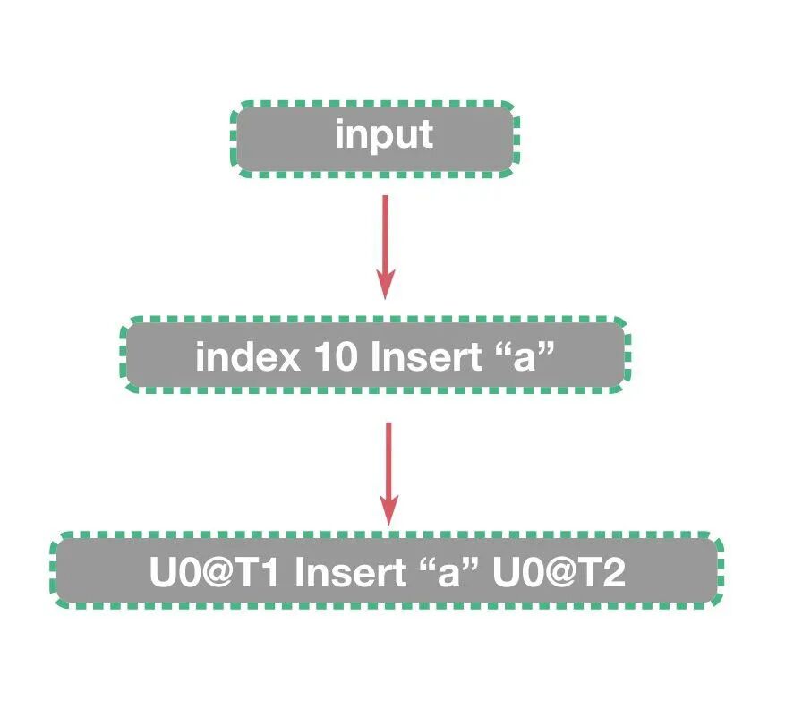 前端接受用户输入,产生初始操作,比如 index 10 insert 'a'在位置10插入字母a,之后通过位置 10 深