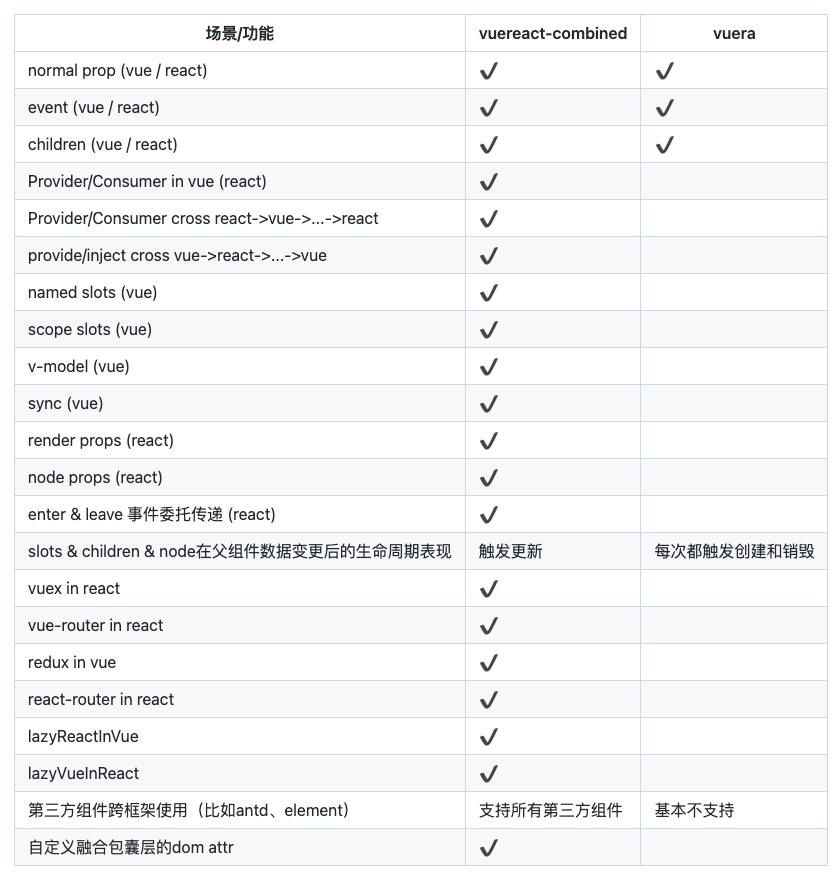 嗯,看似一切都解决了,但其中有一些无法避免的问题:首先,React 与 Vue 的依赖以及编译 babel 生态是有区别的,如果有同一依赖,需要找到两个技术栈同时适配的版本,并且构建成本成倍提升,在本地开发与线上构建中需要单独拿出精力优化,一个文件夹下同时存在.vue 与.tsx,结构杂乱,不利于维护。