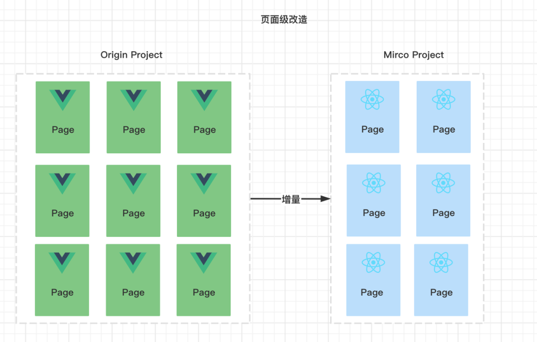 这样我们就能对于旧有的 vue 项目在减少重构成本的前提下做渐进式的迁移。