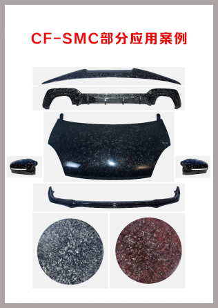 CF-SMC碳纤维增强树脂基片状模塑料(Carbon Fiber Sheet Molding Compound),我司生产的CF-SMC主要以12.5-50mm 的短切碳纤维束为增强材料,浸渍各种树脂基体而制成的成型材料。该材料在高端汽车市场、航空航天、特殊装备、轨道交通、民用消费品、工业制造、电子产品等行业等邻域广泛运用。该模塑料结合模压工艺,可以减少成型时间、降低人工成本、减少浪费,可实现碳纤维制品低成本、高性能、高效率的大规模流水线生产,可生产结构件、次结构件、外观件等;同时,该材料也可通过不同工艺方式获得不同的外观纹理。