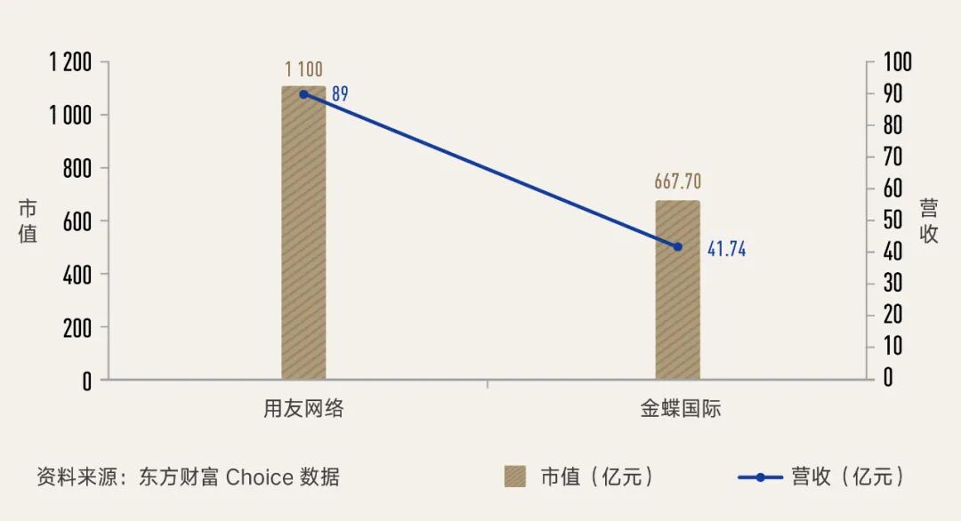 千亿美金价值,这个目标迄今为止还没有一家国内传统企服软件公司做到过。用友网络与金蝶国际是市值最高的两家企业。用友网络2021年营收89亿人民币,市值约1100亿元。金蝶国际市值最高时也没有超过1千亿人民币,最近的营收大约在40亿人民币左右。飞书要尽快实现千亿市值,最有可能的,就是复制To C垄断的模式。