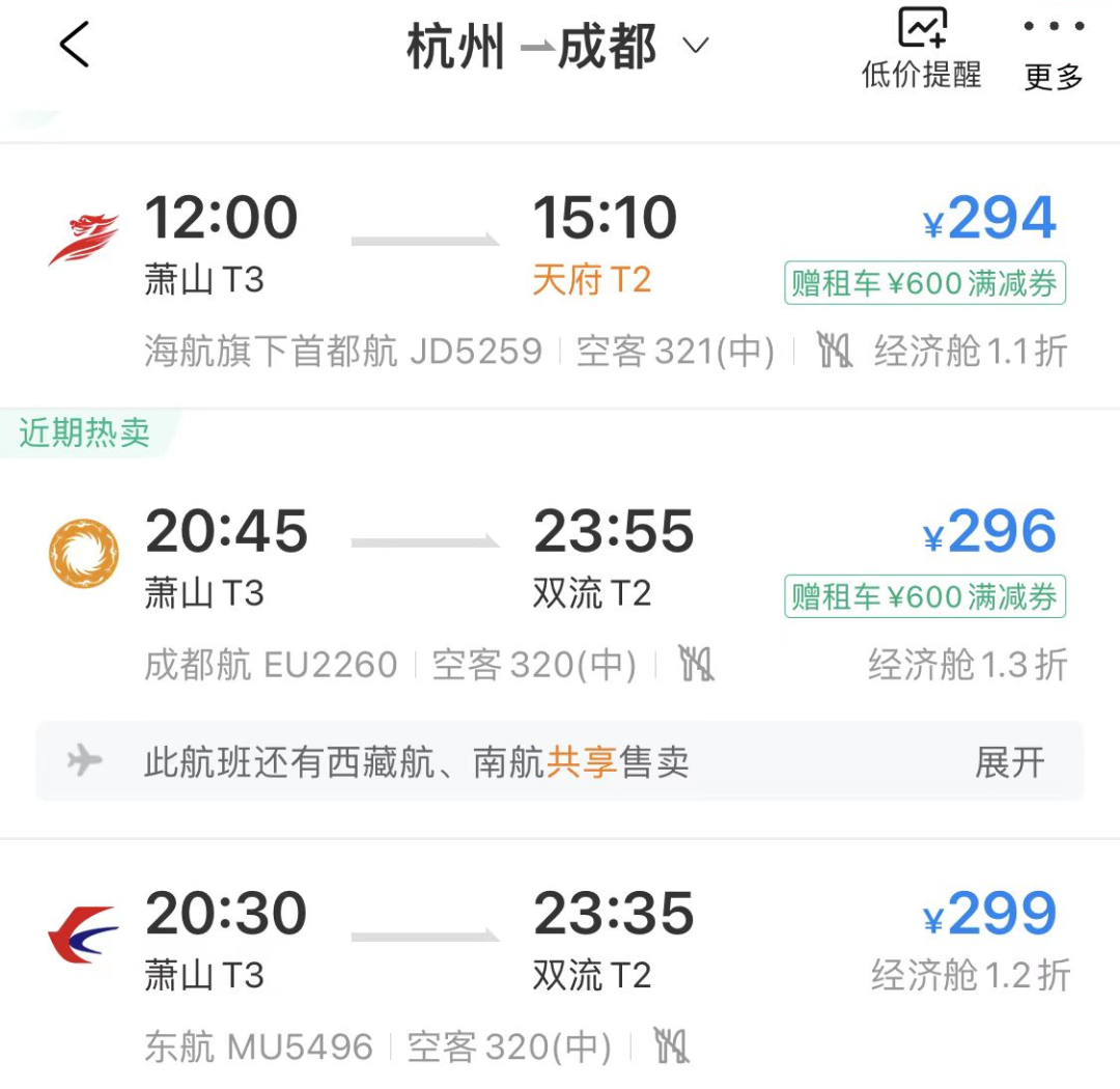 要知道四川本来就是机票洼地,如今节后错峰,大交通更是格外便宜,江浙沪往返基本1K+就能搞定~