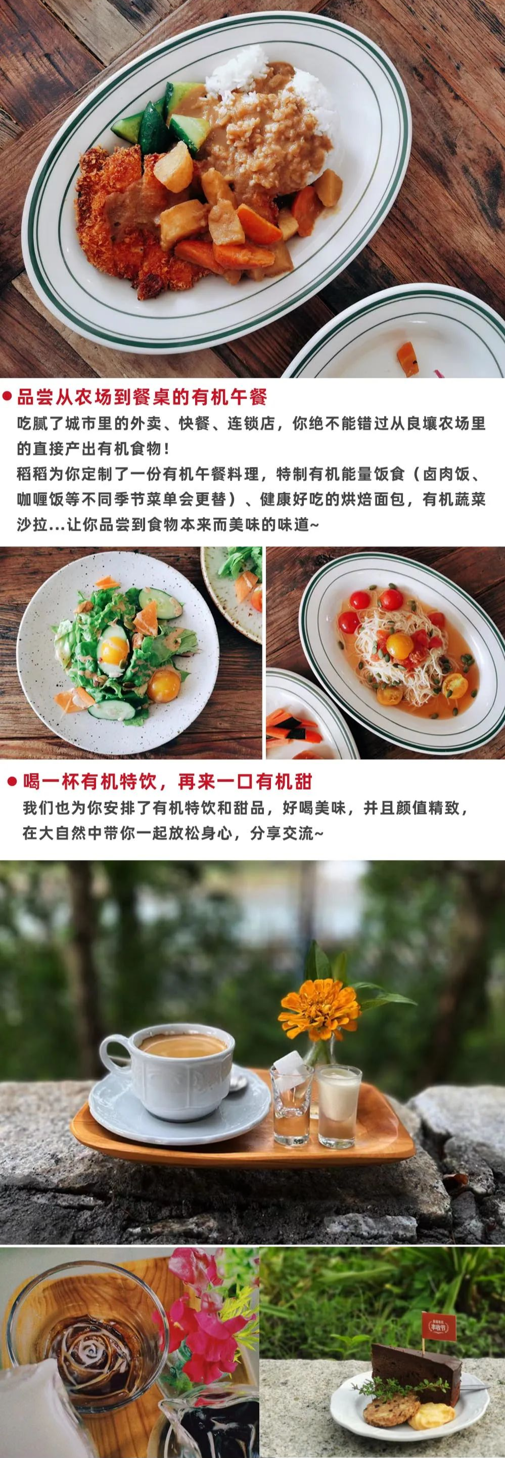 除此之外,活动还包含了两份餐食。与平日的快餐食物不同,庄园内的餐食都是农场里亲手培育产出的有机佳品。