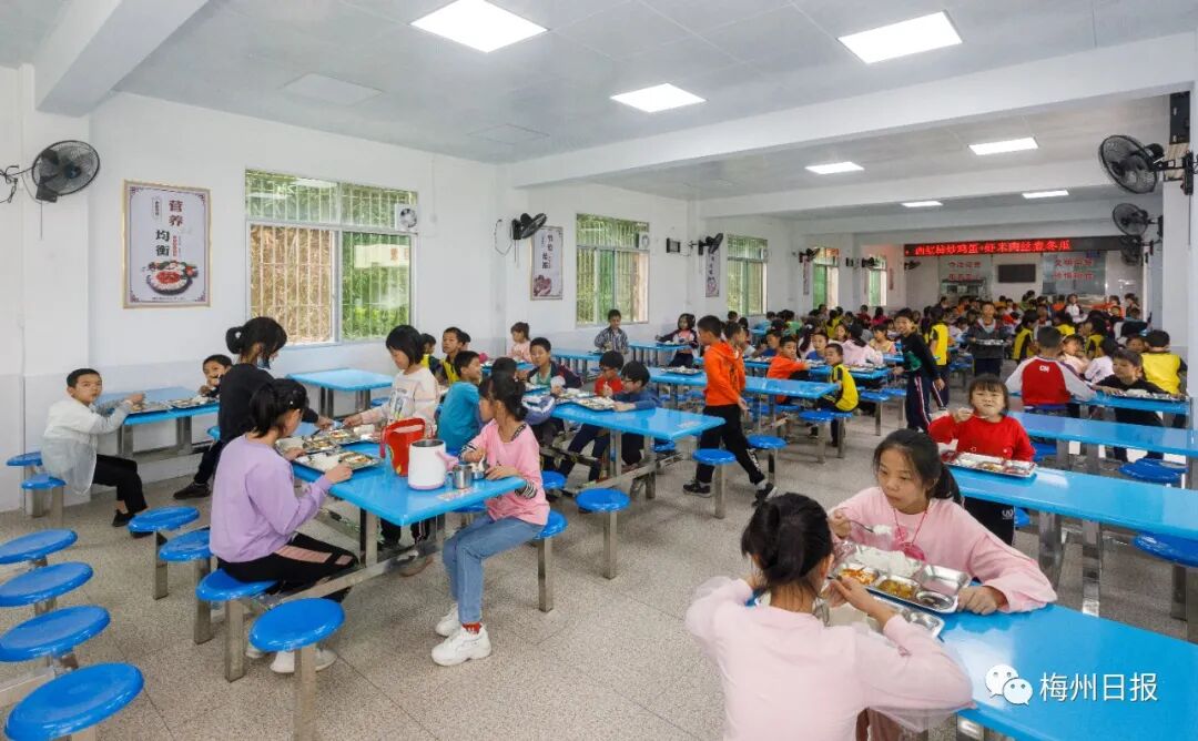 大埔县银江镇中心小学,学生在宽敞的食堂内就餐。