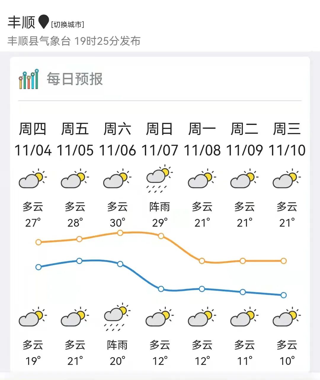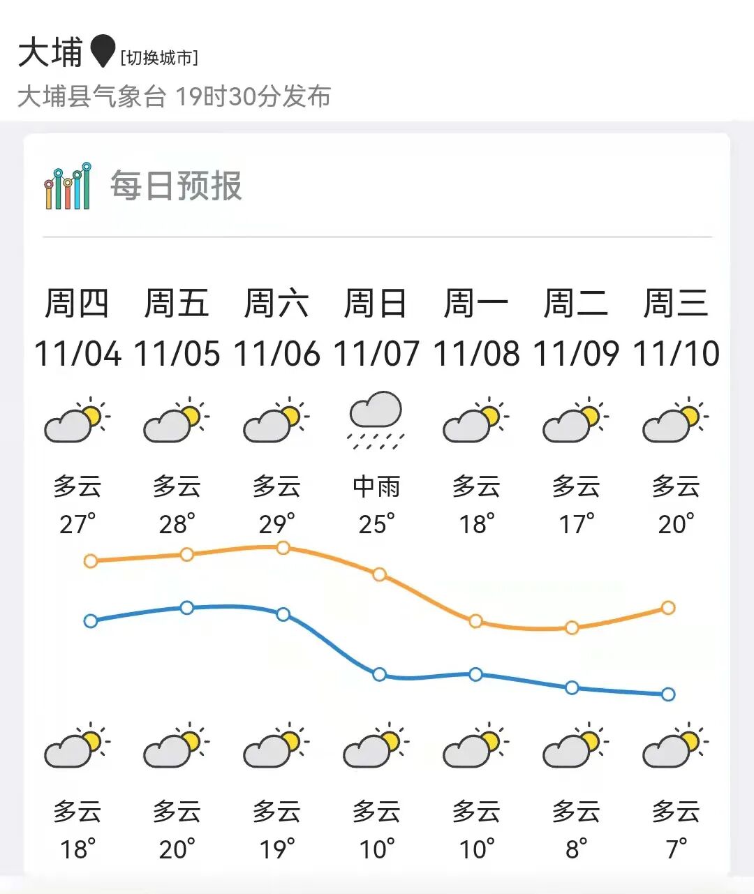 以粤北为例,10月25日早晨,连山首次录得下半年以来10℃以下最低气温(9.8℃),而根据预报,本次冷空气过程,粤北高寒山区最低温有可能降到5℃左右。6日白天地面可能会有点冷空气渗透影响粤北,7日冷空气主体才自北向南影响广东,锋面过境前后,伴有小到中雨降水过程(粤北雨相对较大),北风加大,气温明显下降,毛衣厚外套要“出动”了。