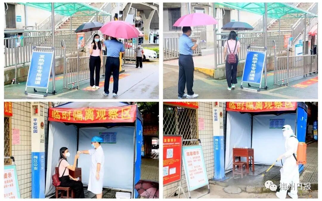 “作为高考考点之一,我校根据相关考试应急处置预案要求,在五月底开展了高考疫情应急防控演练,模拟了考生进入考场、发现疑似病例等处置流程。”梅州中学副校长曾中文表示,该考点已配齐防疫物资、消毒设施,并在校园入口处设置了抗原快速检测点。