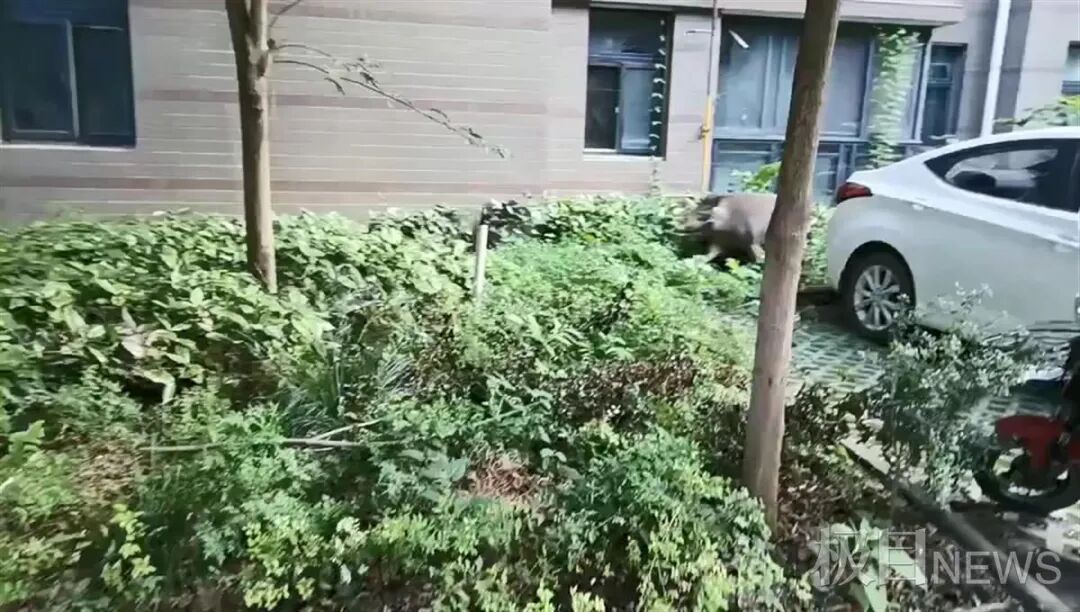 9月3日凌晨,湖北黄石市三江共和城小区内发现一只百余斤重的野猪,该野猪撞断小区两根铁栏杆后逃离。
