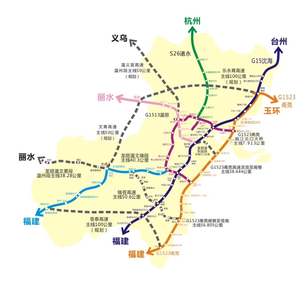 ❖ G15沈海高速:雁荡山、乐清、温州东、大桥北、塘下、瑞安、平阳、萧江