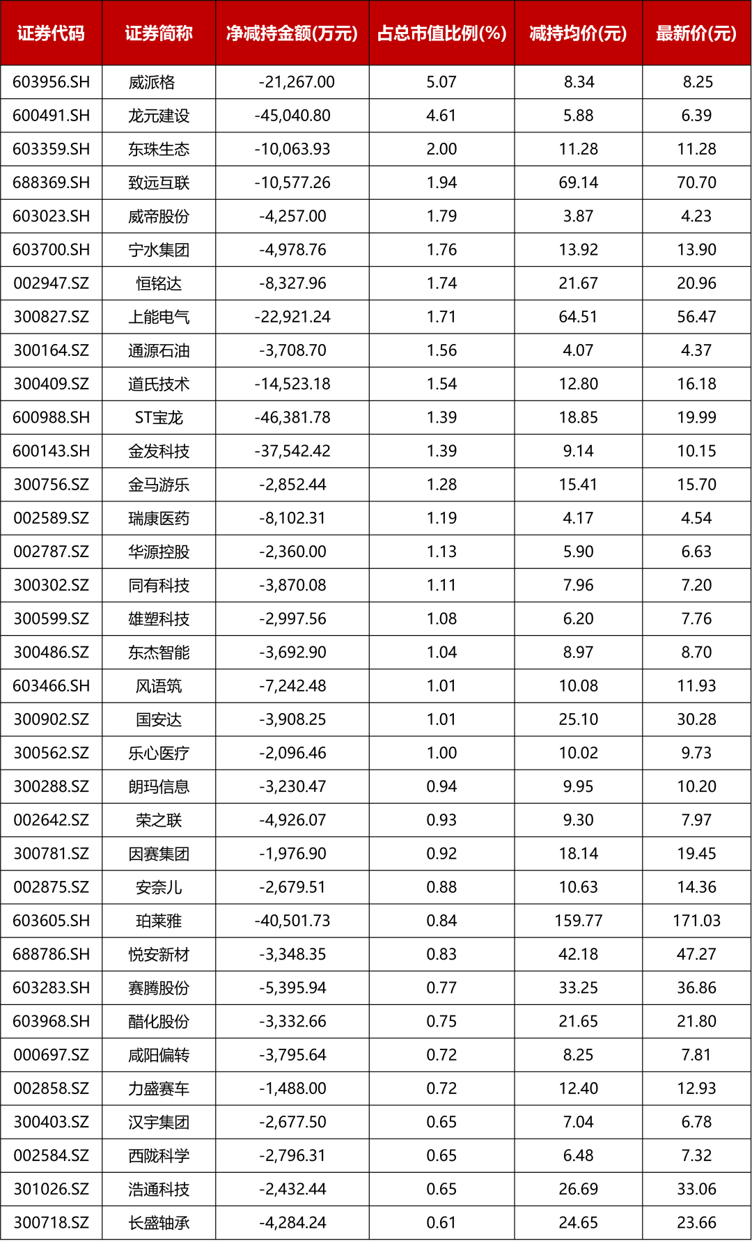 ▍表6:公司管理层11月减持股份列表(减持占比超过0.6%)