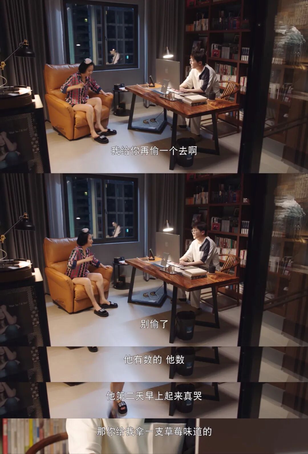 谭卓偷吃儿子棒棒糖,说给郭京飞也偷一个,郭京飞嘴上说别偷,儿子心里有数,第二天起来会哭,但下一句“你给我拿一支草莓味的”立马暴露他也是“惯犯”,笑cry。