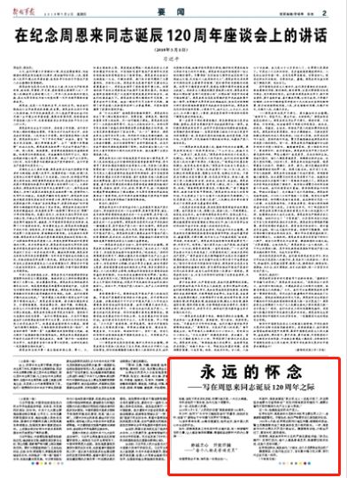 习近平在纪念周恩来同志诞辰120周年座谈会上发表重要讲话(附讲话全文)