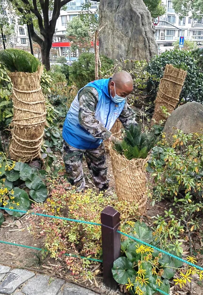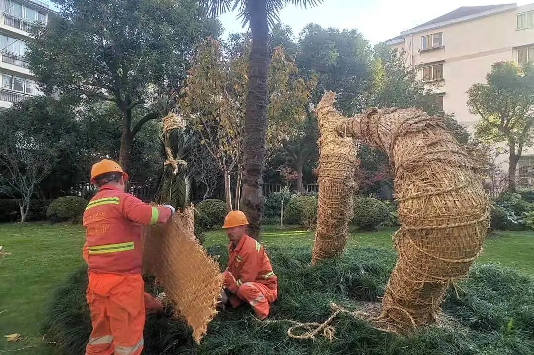 区绿化部门对公园绿地、在建工地和立体绿化内的植物采取防寒防冻措施。