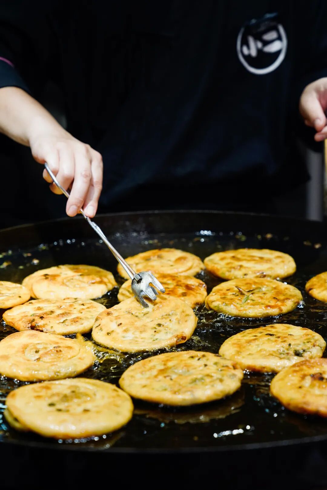 金黄酥脆,香味四溢的提篮桥老摊头葱油饼一号~