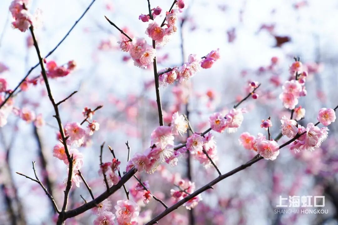 宫粉梅开花繁密,花色淡红,与朱砂梅相似,是梅园里种植数量最多的品种。