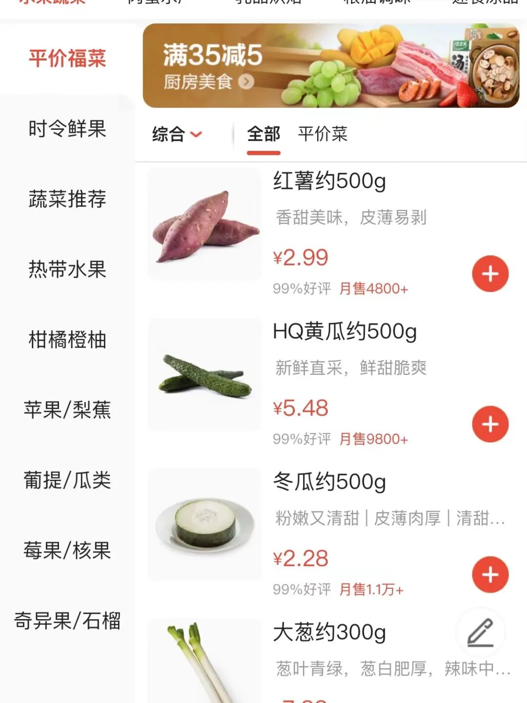 四个平台首页有“超商便利”“蔬菜水果”等专区,可以直接在里面买到大小超市及菜市场(如华润万家、天猫小店、百果园等)的商品。